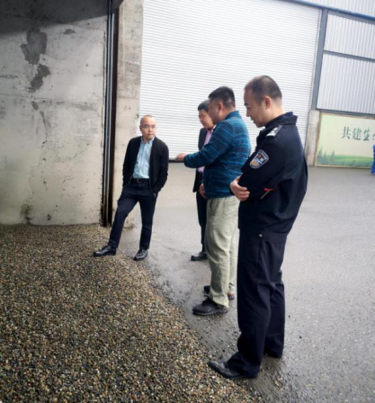 【生產(chǎn)部副部長萬旭凌講解瀝青煙氣處理設(shè)備工作原理 】 【劉書記對倉區(qū)原材料進(jìn)行了解】